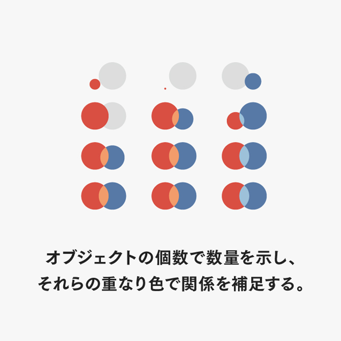 単なる数値の大小だけでなく、要素間の関係や共通部分を視覚的に強調できる。